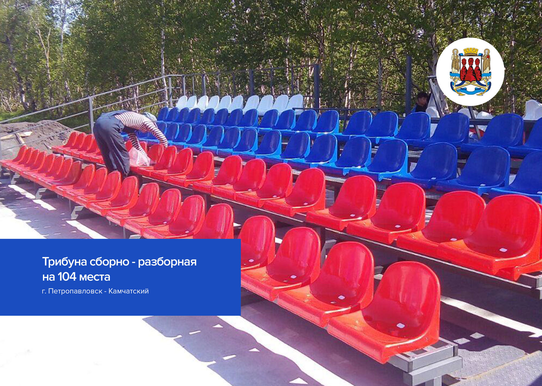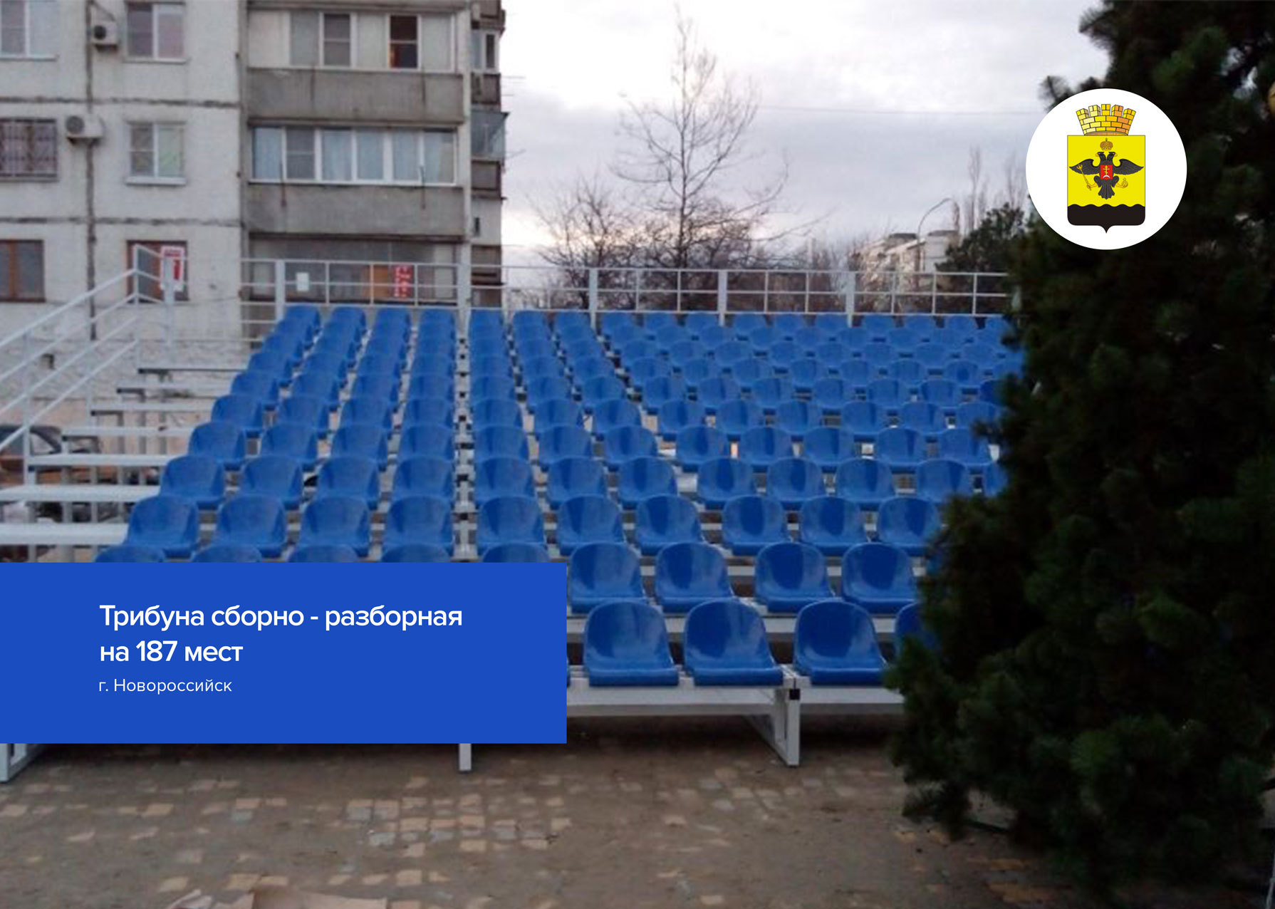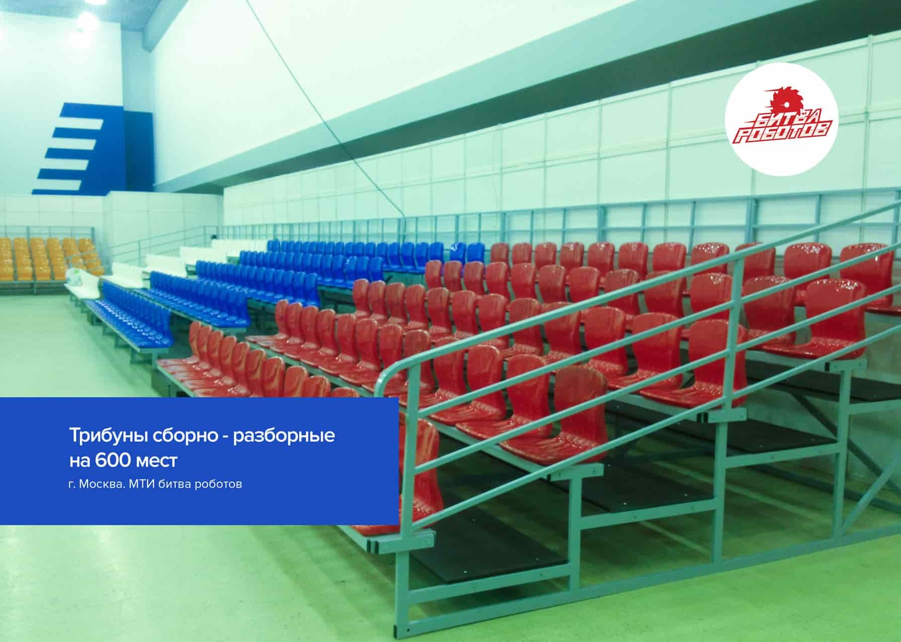 Нашей компанией было изготовлено несколько видов нестандартных сложнейших трибун с подъемом 1-го ряда на 1,4 метра и складными пластиковыми сиденьями.