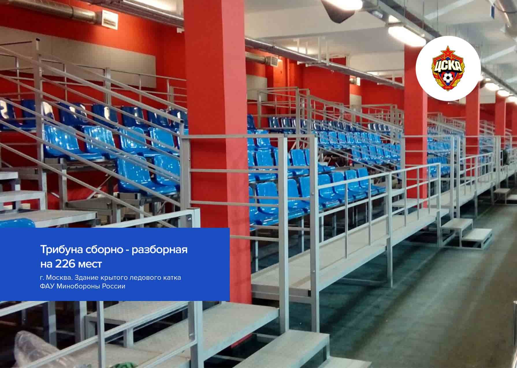 Все работы проводились в сжатые сроки, доставка и монтаж на закрытой военной территории. Трибуны были сданы в срок и мы продолжаем сотрудничать с Минобороны.