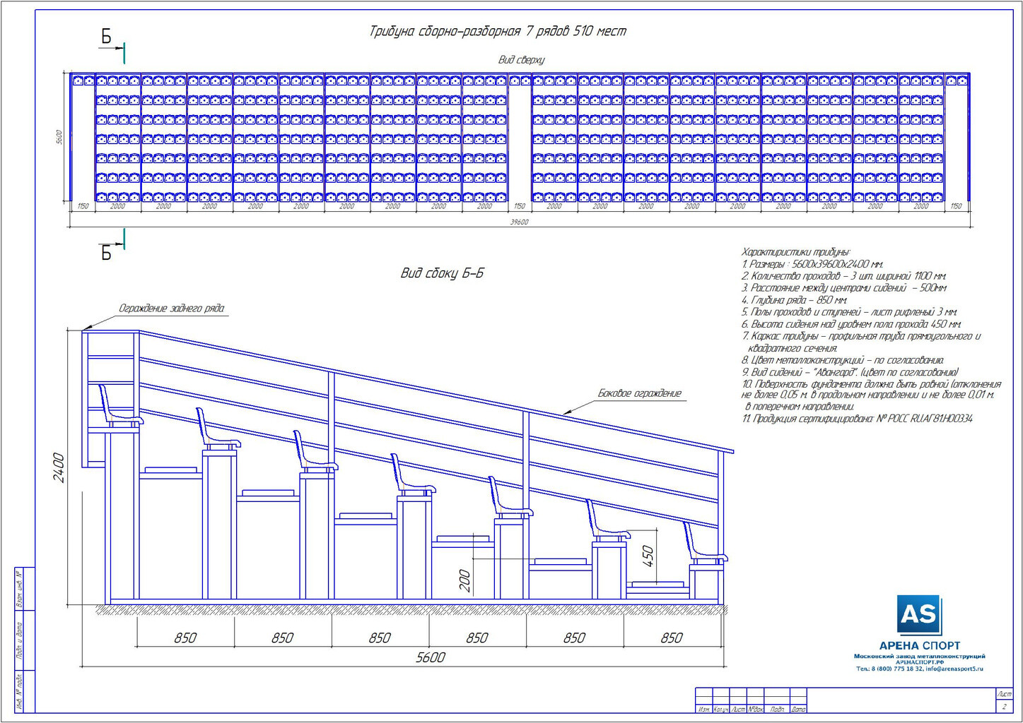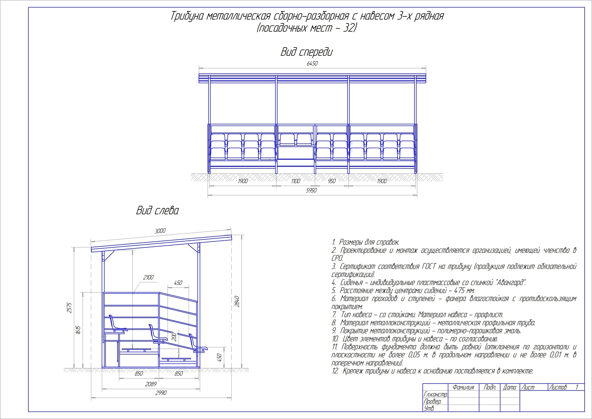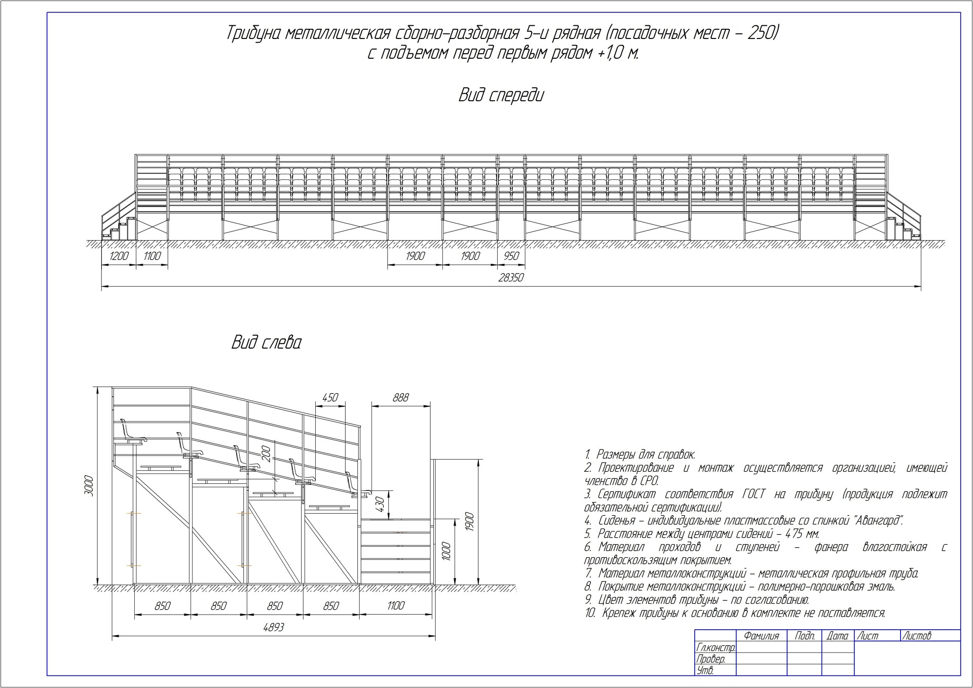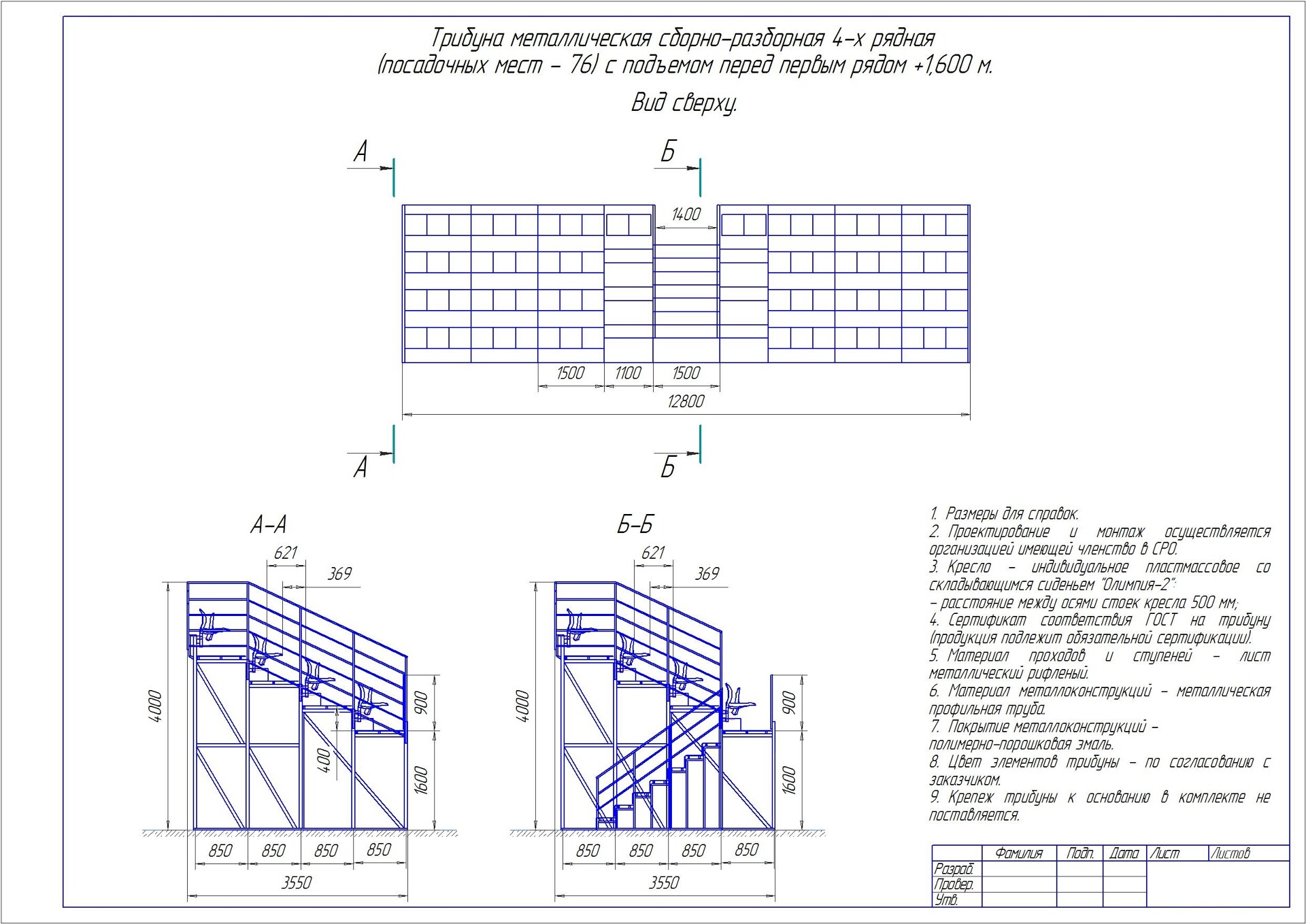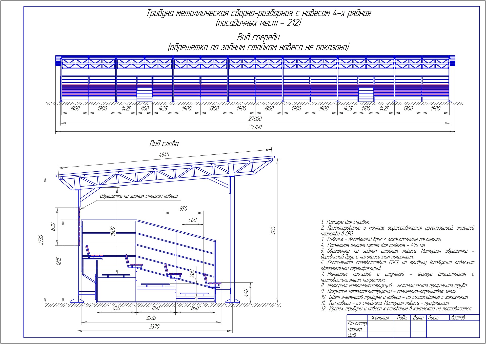 Трибуна для стадиона изготавливается индивидуально по вашему проекту, исходя из: