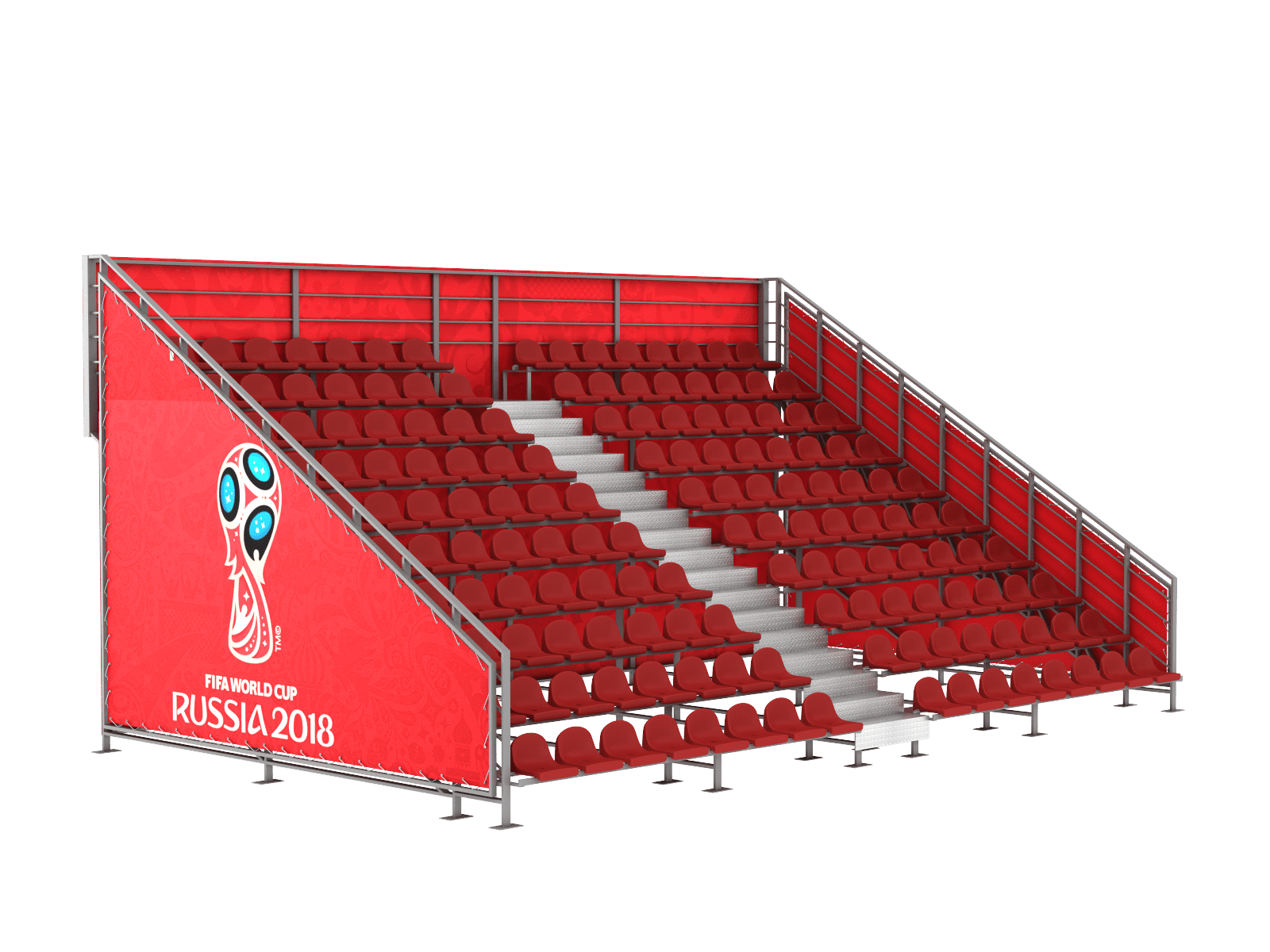 Так, для чемпионата, нами было поставлено более 10 трибун различной рядности и вместимости.